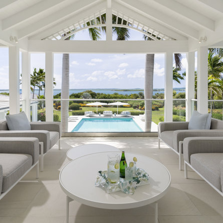 A stunning secluded private estate at Jumby Bay Island's highest point, offering 360-degree views and constant breezes. The estate features a tennis court, ocean-view, heated spa, bocce court, and curated library.